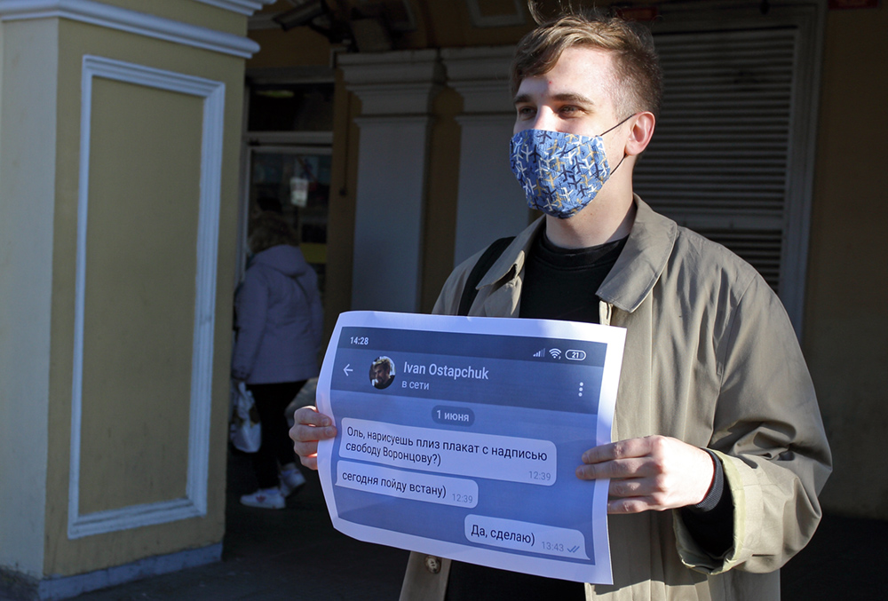 Журналист "Новой газеты" Илья Азар 26 мая в Москве провел одиночный пикет в поддержку Воронцова, за что был отправлен под арест на 15 суток. Это решение суда вызвало бурную критику со стороны журналистского сообщества и оппозиционно настроенных граждан, которые в свою очередь с 28 мая выходят в Москве, Петербурге и нескольких других городах России в одиночные пикеты и в поддержку Азара, и в поддержку Воронцова. Как правило, полиция задерживает активистов сразу после начала пикета.