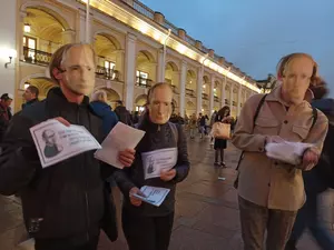 У станции метро "Гостиный двор" 7 октября задержали трех активистов, сообщил ЗАКС.Ру один из них Владимир Василенко. Он рассказал, что они в масках президента Владимира Путина раздавали листовки с поздравлением его с днем рождения. Василенко, по его словам, раздавал листочки с надписью "Лучший подарок – это ваши налоги! Навечно ваш В.В. Путин".