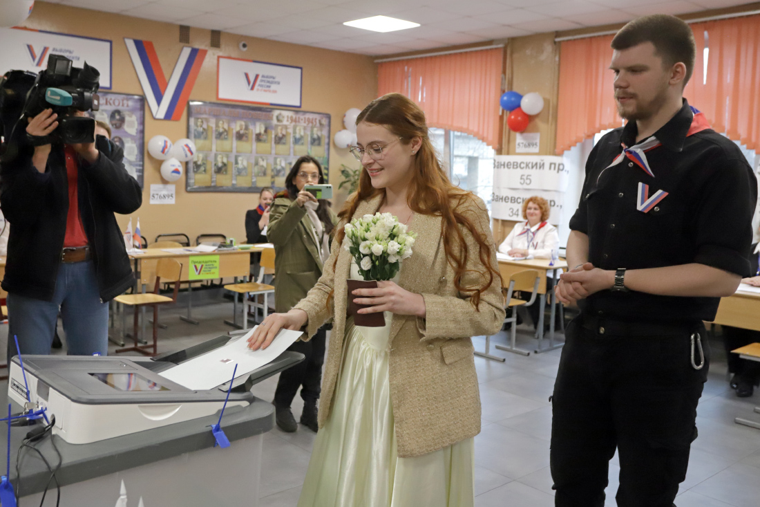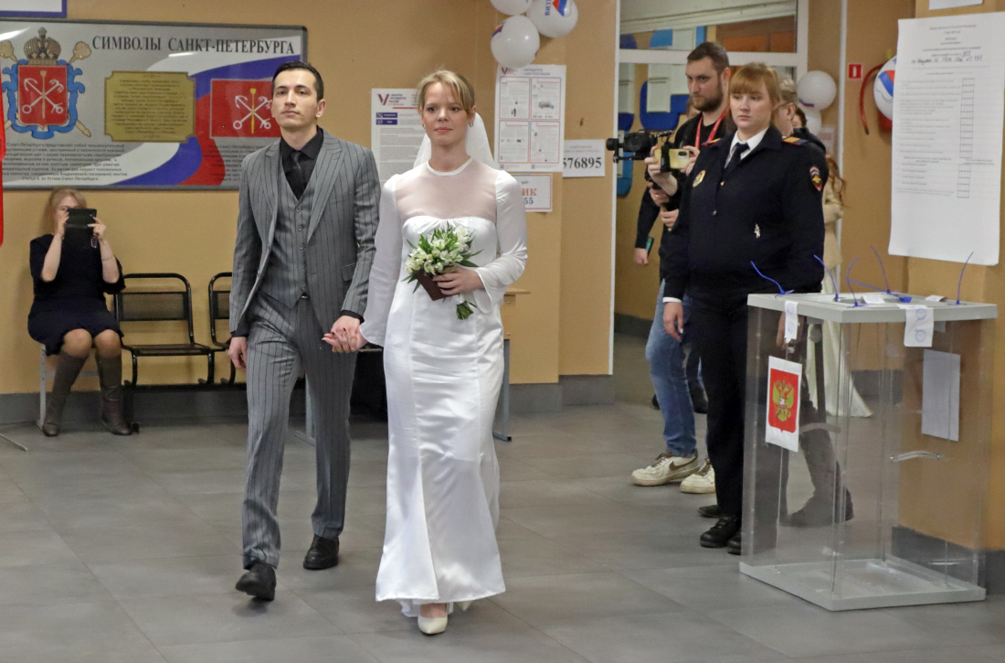 Пары решили воспользоваться своим конституционным правом голосования сразу после регистрации брака, сообщает "Петербургский дневник".