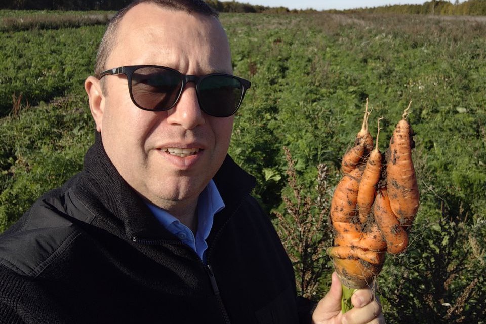 Вице-спикер Законодательного собрания Павел Иткин (ЛДПР) поделился с подписчиками своего telegram-канала фотоснимком, на котором он запечатлен с морковью причудливой формы. По словам парламентария, это натуральный корнеплод, который вырос на сельскохозяйственном предприятии в Волховском районе Ленинградской области.