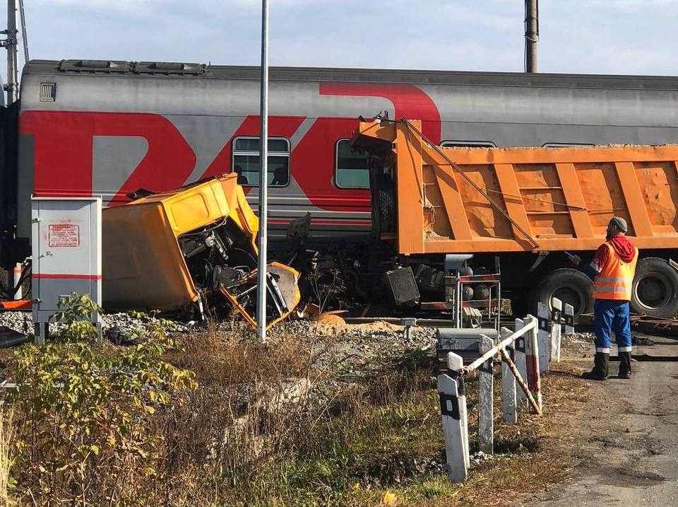 Столкновение поезда и грузовика произошло днём 7 октября возле станции Свияжск в Татарстане. По предварительным данным, водитель КамАЗа выехал на железнодорожный переезд на красный сигнал светофора, повредил два устройства заграждения и допустил столкновение с локомотивом. Ему оказана медицинская помощь.