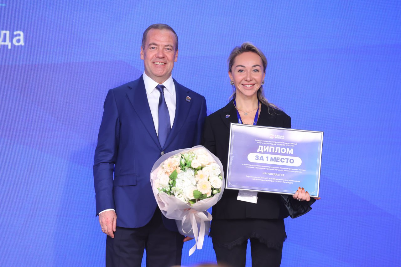 Депутат МО "Аптекарский остров" Валерия Лошак удостоилась награды от "Единой России" за инициативу по созданию в Петербурге памятника участникам специальной военной операции. Проект скульптуры "Защитник Отечества" признали лучшей практикой реализации народной программы партии среди первичных отделений ЕР городских населенных пунктов. Торжественная церемония награждения состоялась в Москве 23 октября. Награду вручал председатель партии Дмитрий Медведев.