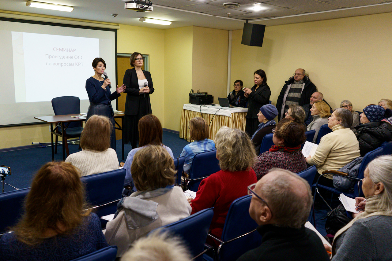 С приветственным словом к собравшимся обратилась глава регионального отделения Надежда Тихонова. Она отметила, что после утверждения поправок в городском законе единственным способом отказаться от включения дома в программу остается правильная организация собрания собственников. Действующая редакция закона допускает включение в программу КРТ только домов, в которых жители приняли соответствующее решение на ОСС. Раньше дома, которые не провели собрание, включались в программу автоматически.
