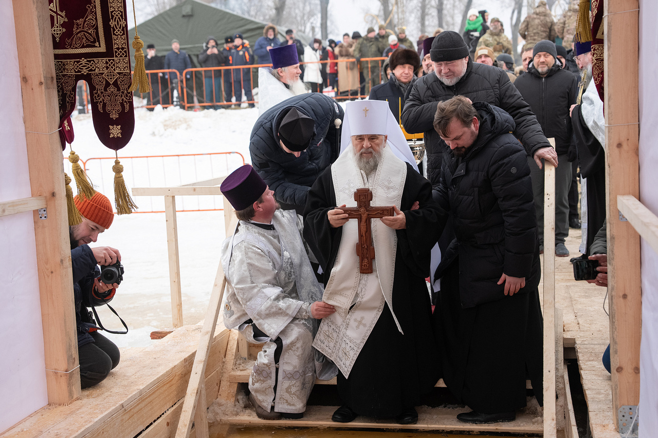 Перед окунанием Беглов и Бельский посетили божественную литургию в Николо-Богоявленском Морском соборе, службу в котором провел митрополит Варсонофий. Губернатор поздравил духовенство и прихожан с Крещением и с престольным праздником Никольского собора. При этом он отметил, что Крещение отмечалось и в осажденном Ленинграде, вспомнив при этом о 83-й годовщине прорыва блокады, которая отмечалась накануне.