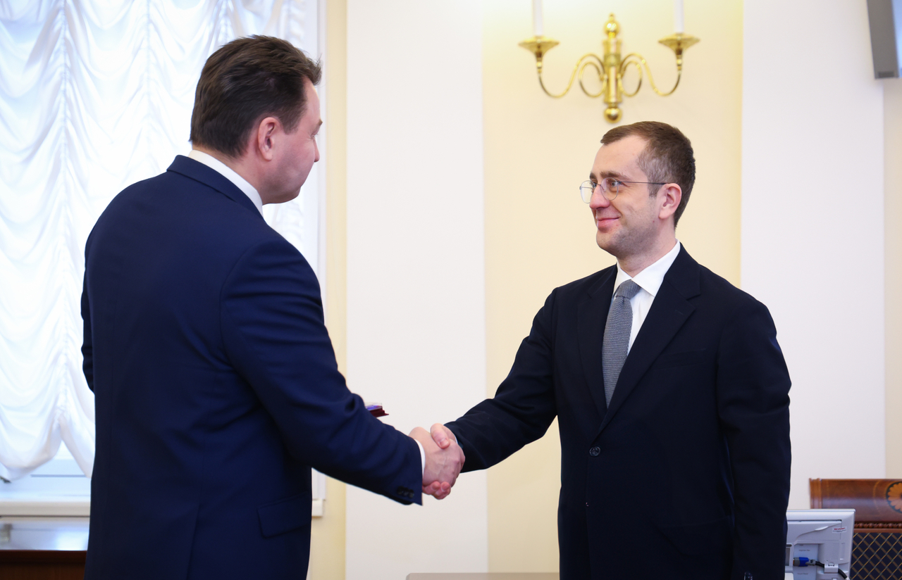 В Смольном наградили петербургских чиновников по поручению руководства министерства обороны и главы Донецкой народной республики Дениса Пушилина. Вице-губернатор Петербурга Владимир Омельницкий удостоился медали "За укрепление боевого содружества" и "За помощь в бою", сообщили в пресс-службе городской администрации 2 февраля.