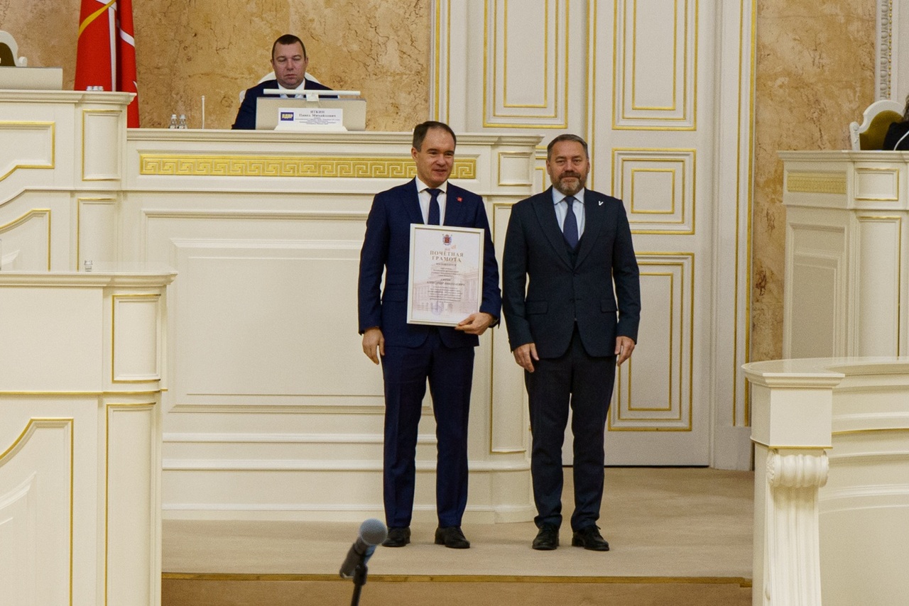 Также на заседании ЗакСа вручили благодарность первому заместителю председателя комитета финансов Татьяне Пигольц.