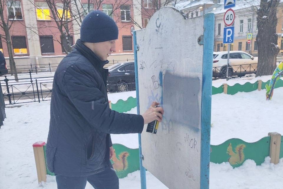 Внимание муниципалов привлекло граффити с рекламой наркотиков, нанесенное на информационный щит на детской площадке. Вооружившись баллончиками с краской, Маннанов и Кондратьева прибыли к щиту и совместными усилиями закрасили рекламу запрещенного.