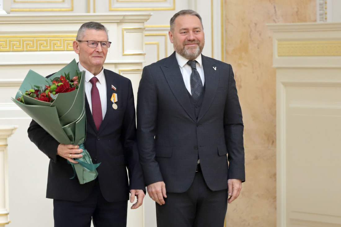 Депутат Законодательного собрания Борис Зверев получил 15 апреля медаль министерства обороны "За морские заслуги в Арктике", сообщил корреспондент ЗАКС.Ру. Награду парламентарию вручил спикер Заксобрания Александр Бельский на прошедшем пленарном заседании.