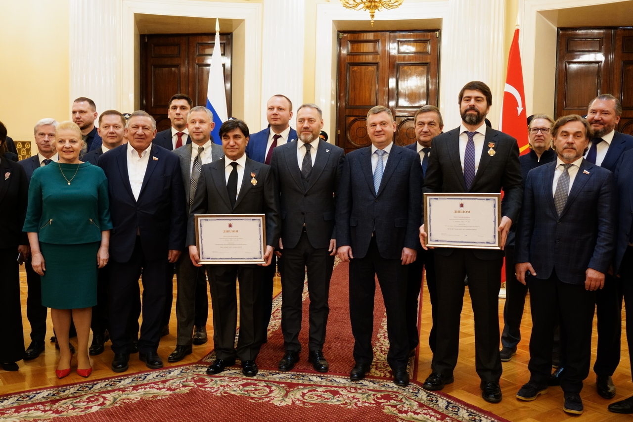 В Ротонде Мариинского дворца 15 апреля впервые состоялась церемония вручения знаков "Почетный благотворитель Санкт-Петербурга", передает корреспондент ЗАКС.Ру. Председатель городского парламента Александр Бельский вручил нагрудные знаки председателю совета директоров компании "Киевская площадь" Году Нисанову и президенту спортивной федерации бокса Максиму Жукову.