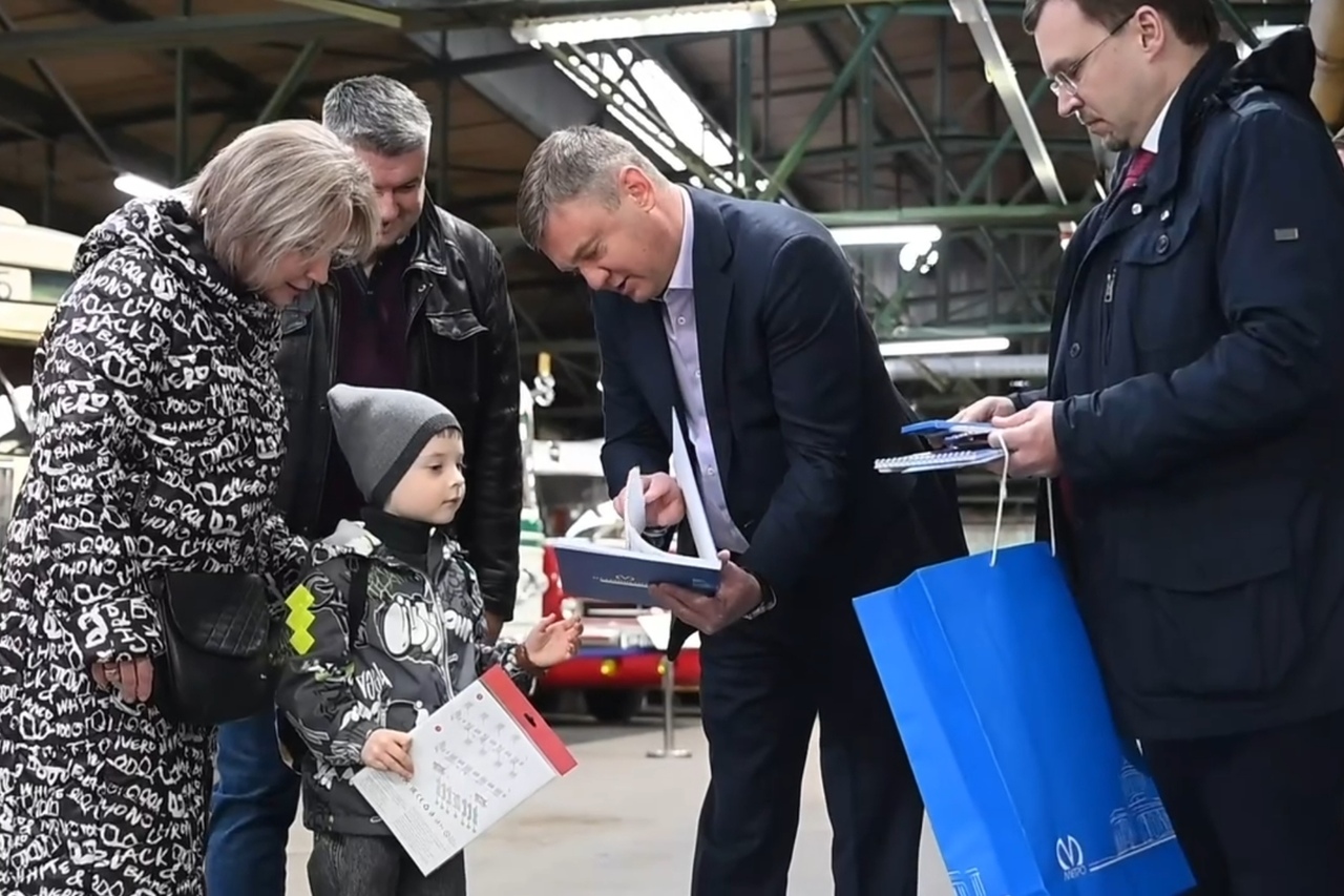Сотрудники метрополитена забрали мальчика вместе с сопровождающими со станции метро "Парнас", прокатили на новом синем вагоне, провели Артемию экскурсию, а также рассказали о профессии машиниста электропоезда. После поездки и экскурсии Поляков вручил ребенку книгу о метрополитене Петербурга от имени губернатора Александра Беглова.