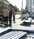 Предприниматели рынка у станции метро "Академическая" попрощались с тем, что осталось от их торговых павильонов. На участке, обнесенном забором, под корень снесены пять торговых точек. Бизнесмены также провели символическую акцию прощания: они возложили цветы на крыльцо оставшегося здания, а также в центр силуэта павильона, нарисованного на асфальте.