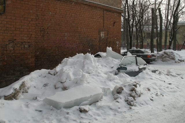 Так, у одного из читателей — владельца отечественной "Лады" — проломило крышу салона и лобовое стекло. Случилось это во дворе дома № 2/57 по Ланскому шоссе: