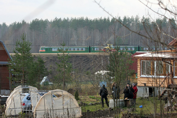 Первая остановка по маршруту – садоводство «Аметист», рядом с которым ведется строительство сортировочной станции Лосево-1. Подъездная дорога к садоводству разбита строительной техникой, холм, с которого когда-то открывался красивый вид на окрестности, срыт под песчаный карьер. Впрочем, основная проблема для жителей – шум. Железная дорога огибает садоводство полукольцом и после строительства второго пути практически вплотную приблизилась к жилым домам. Лес, ранее выполнявший защитную функцию, вырублен и, когда рядом проходит товарный поезд, людям приходиться кричать, чтобы услышать друг друга. После завершения строительства, согласно заложенным в проекте прогнозам интенсивности движения, поезда здесь будут ходить каждые 10-15 минут. Тем не менее, установка шумозащитных экранов проектом не предусмотрена – защищать от шума железнодорожники готовы только те дома, где люди проживают постоянно. В то же время, как свидетельствуют жители, в ближайших к железнодорожным путям домах уже появляются трещины. Больше всего жители садоводства раздражены тем, что их вообще никто ни о чем не предупреждал, всю информацию о проекте приходилось добывать с боем, а их проблемы и вовсе никого не интересуют.