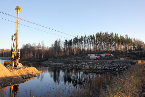 На берегу Лосевской протоки строителями уже возведены опоры нового железнодорожного моста: