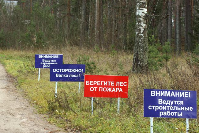 Подобные таблички установлены на всей протяженности дороги от Озерского до поселка Красный Сокол. Инспектор из Каменногорска объяснил им, что в случае пожара в их домах отвечать за последствия будут они сами, т.к. не обеспечили противопожарные мероприятия: